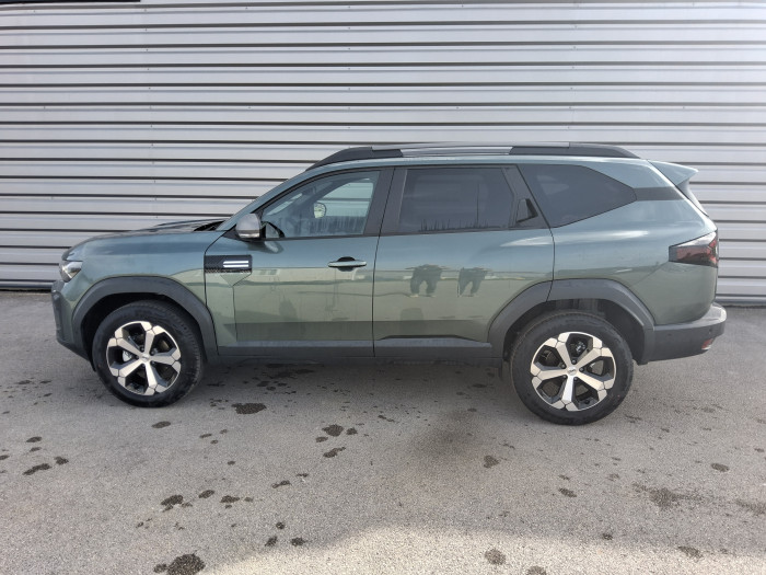 Airbag AV conducteur et passagerAirbag passager deconnectableAirbags lateraux AV et rideauxAlerte franchissement de ligne et assistant maintien dans la voieAllumage des feux automatique et essuie-glace automatiquesAntenne requinAppel SOS (E-call)Avertissement distance de securiteBanquette AR 40/20/40 et fonction Easy Fold 60/40Barres de toit longitudinalesBoite de vitesse automatique 6Boucliers ton carosserieCamera de reculCarte mains libresClimatisation automatique bi-zoneCommutation automatique feux de croisement/routeConsole Centrale avec porte-gobelets, accoudoir et rangement refrigereCoques de retroviseurs Gris MegalitheDetection de perte de pression des pneusFeux de croisement a LEDFrein de parking electriqueJantes alliage diamantees 18'' TAGASANKit de gonflageLeve-vitres AR electriquesLeve-vitres AV electriquesMedia Nav Live ( Navigation avec trafic en temps reel + Systeme audio 3D Arkamys, 6HP, ecram 10,1")Mode ecoMy Safety Switch (bouton de deconnexion des aides a la conduite)Peinture opaquePlancher de coffre platPrise 12V coffreRadars de reculRecharge smartphone par inductionReconnaissance des panneaux de signalisation avec alerte de survitesseRegulateur de vitesse adaptatifRepetiteurs lateraux a LEDRetroviseur interieur jour/nuitRetroviseurs exterieurs electriques, degivrants et rabattable electriquementSellerie tissu avec logo DaciaSiege conducteur semi - electriqueSignature lumineuse en "Y" a LEDSysteme anti-blocage des roues (ABS)Systeme de controle de traction (TCS)Systeme de controle de trajectoire (ESC) et aide au demarrage en coteSysteme de fixation IsofixSysteme de freinage d'urgence avance (pieton, deux-roues et intersection)Systeme de surveillance de l'attention du conducteurTableau de bord digital 10"Verrouillage centraliseeVitres AR surteinteesVolant reglable en hauteur et en profondeurVolant Soft Feel