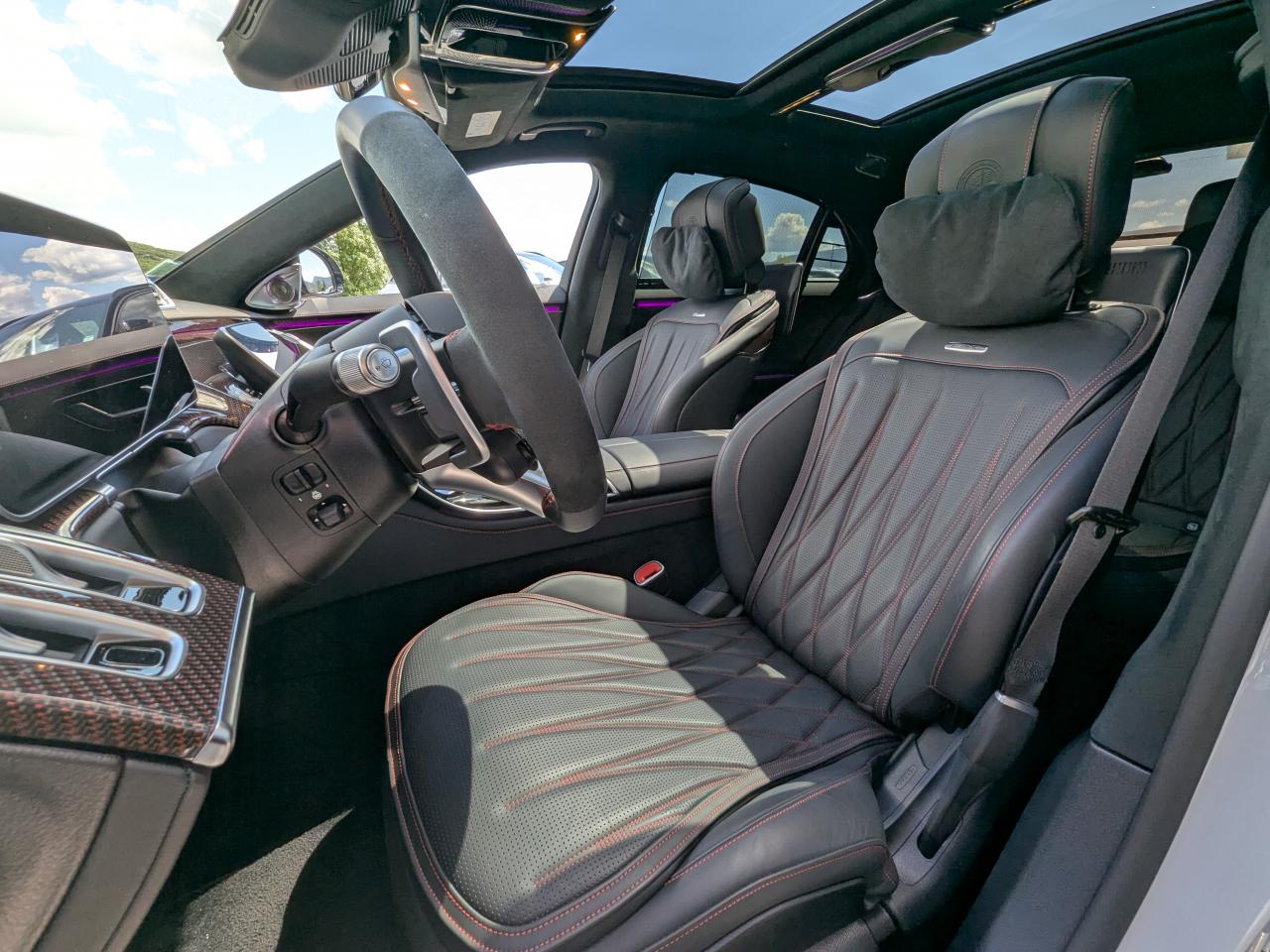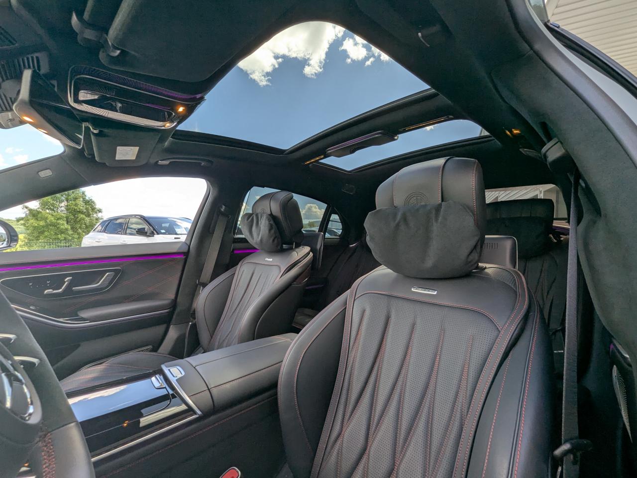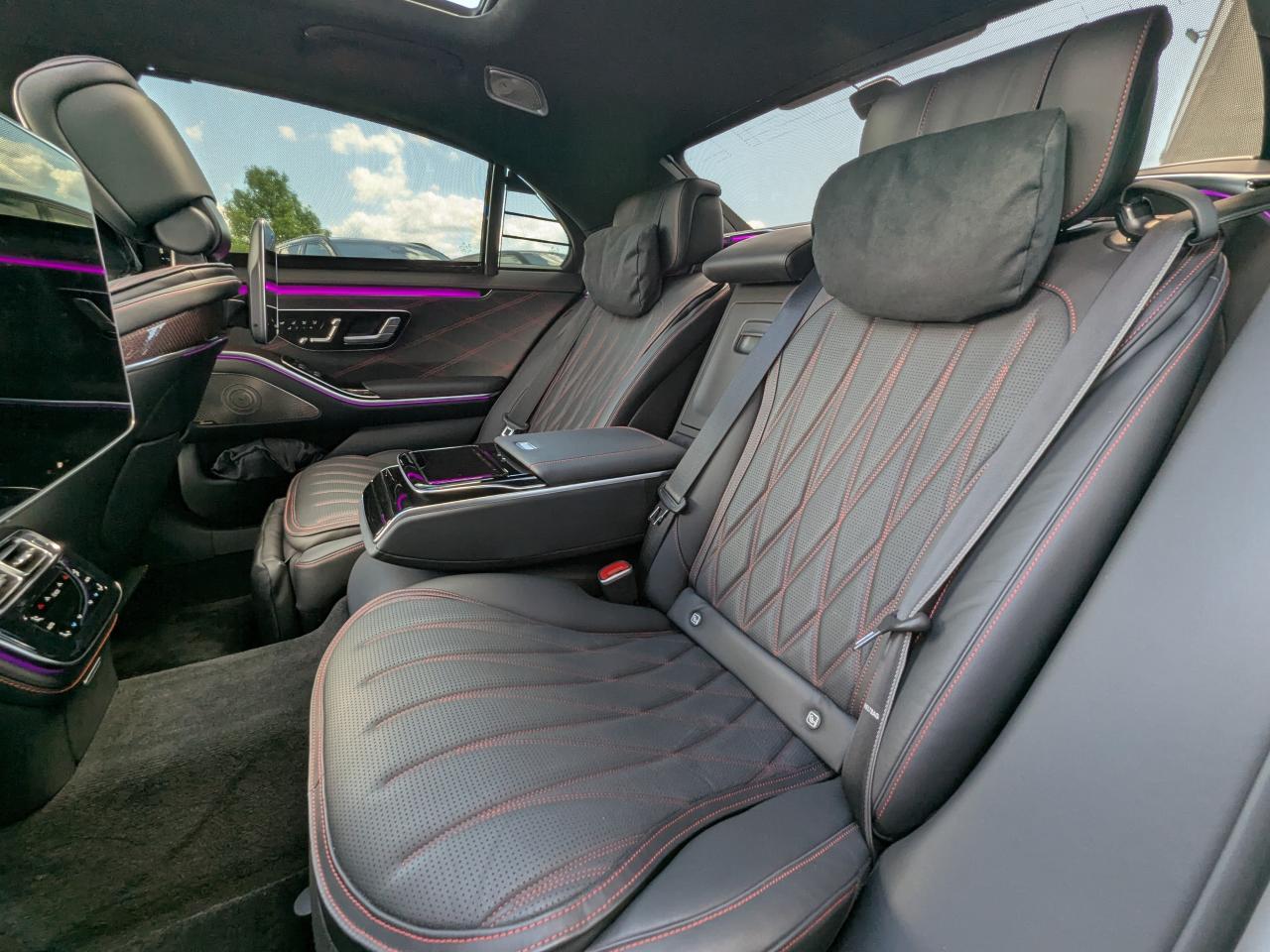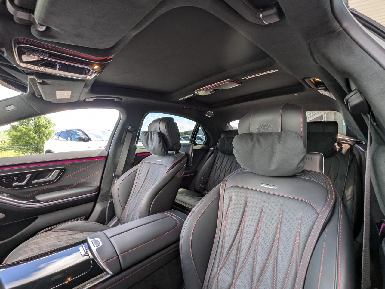 Confort Limousine (Châssis Long) : Un espace royal à l'arrière, sublimé par le système audio Burmester 3D Surround et les sièges multicontours actifs.