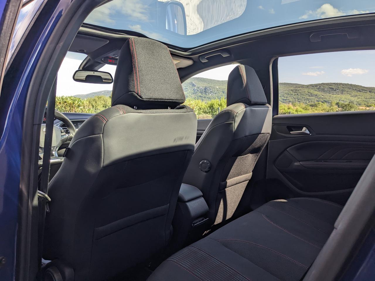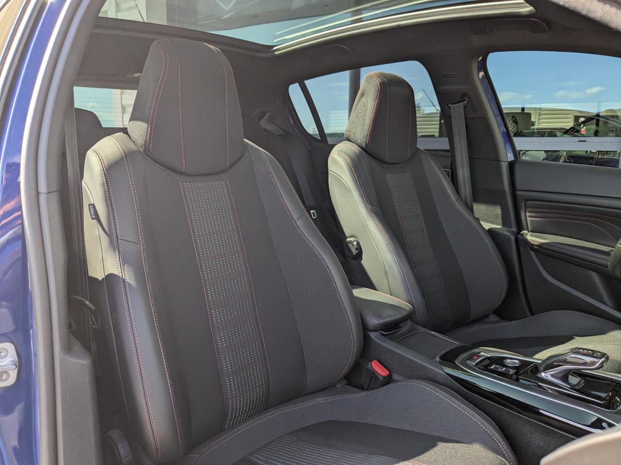 L'intérieur, soigné avec des surpiqûres rouges spécifiques à la finition GT Line, vous plonge dans une ambiance moderne :