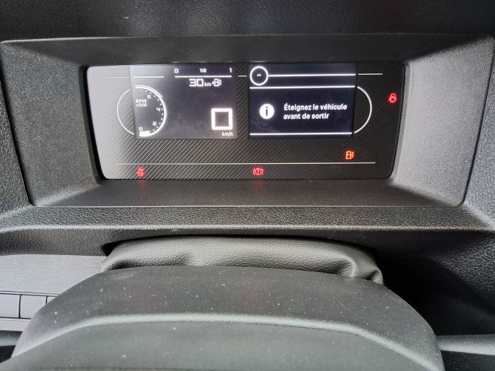 6 anneaux d'arrimage repartis uniformement sur la zone de chargementABS, AFU, ASR, ESP avec aide au demarrage en penteAide au stationnement ARAirbags frontaux conducteur et passagerAllumage automatique feux de croisement et des essuie-vitres AVBaguettes laterales noirs teintes masseBaguettes laterales teintes masseBanquette passager 2 places avec appuis-tetes reglables en hauteur avec rangement sous assiseBoitier telematique (appel d'urgence et d'assistance localisees + offres de service connectes))Boucliers AV et AR teintes masseClimatisation manuelle regulee en temperatureCloison pleine toleeCombine numerique LCD noir et blancCommandes au volant du systeme audio et du regulateur-limiteur de vitesseCommandes radio au volantConnectivite via BTA (appel d'urgence et d'assistance localisees + offres services connectes)Coques de retroviseurs exterieurs noirs teintees masseCoques de retroviseurs exterieurs teintees masseDetection de sous-gonflage indirecteEnjoliveur de rail de porte laterale coulissante teintes masseGarnissage Tissu bi-ton noir-grisJantes tole 16'' grises avec cabochon noirJeu de clefs : 2 plips HF 3 boutons avec fonction selectiviteKit de depannage provisoire de pneumatiquesKit de regonflage pneumatiques (Compresseur 12 V + Cartouche de produit de colmatage).Leve vitres AV electriques impulsionnelsPack Securite : Detection inattention conducteur, Commutation automatique des feux de route, Assistance au maintien dans la voie, Reconnaissance des panneaux de vitesse et recommandation, Freinage automatique d'urgence avec alerte risque de collisionPack Visibilite : Allumage automatique des feux de croisement et des essuie-vitresPanneaux de garniture de type Isorel en rang 2 et 3Panneaux lateraux interieurs rangs 2 et 3 de type IsorelPare-brise feuillete acoustiquePare-brise feuillete acoustique athermiquePoignees de portes exterieures teintes massePorte laterale coulissante droitePortes AR battantes tolees 50/50 a ouverture a 180°Portes AR battantes tolees 50/50 a ouverture a 180° avec verrou sur porte gauche uniquementPrise 12 V (120 W max) dans la boite a gantsPrises 12V (x2) : dans la boite a gants et dans l'espace de chargementProjecteurs H15 avec feux diurnes a lampesProjecteurs halogenes (H15) avec feux diurne integreProjecteurs halogenes avec feux diurne integreRadio DAB Bluetooth avec ecran tactile 5'' monochrome + 4 HP (2 tweeters + 2 woofers)Radio RCE (DAB), ecran 5'' monochrome tactile (2HP + 2 tweeters) + Bluetooth+ 1 prise USBRegulateur limiteur de vitesseRetroviseurs exterieurs electriques et chauffantsRevetement de sol TPO dans l'habitacleRoues toles peintes grises 16" avec cabochon noirService connecte ''Pack Connect One'' (inclus pendant 10 ans)Service connecte ''Pack Connect Plus'' (inclus pendant 6 mois)Service connecte ''Preventive Maintenance'' (inclus pendant 4 ans)Services connectes (4 ans inclus dans le prix du vehicule)Siege conducteur avec appui-tete reglable en hauteur et avec accoudoirTeinte opaqueVolant reglable en hauteur et en profondeur